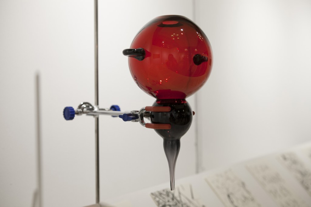 Chaque pièce est un ustensile potentiellement fonctionnel, comprenant une base sphérique et un nombre d’ouvertures variable, et attend d’être activé par l’imaginaire du spectateur. Leur taille a été pensée pour une utilisation et une présentation sur des pieds de laboratoire.